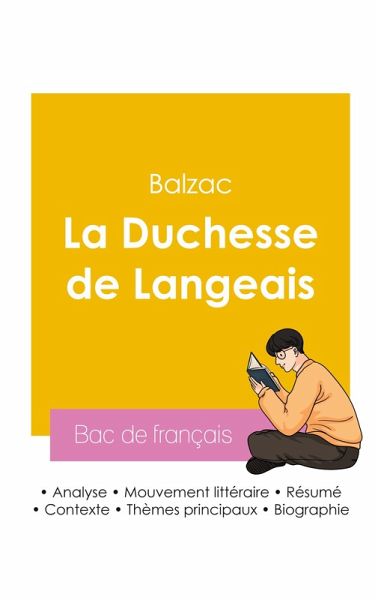 Réussissez votre bac de français 2026 grâce à notre fiche de lecture du roman La Duchesse de Langeais de Balzac ! Validée par un professeur de français du secondaire, cette analyse littéraire est une aide précieuse pour tous les lycéens. Grâce à notre travail éditorial, les points suivants n'auront plus aucun secret pour vous : la biographie de l'écrivain, le résumé du livre, l'étude de l'uvre, l'analyse des thèmes principaux à connaître et le mouvement littéraire auquel est rattaché l'auteur.