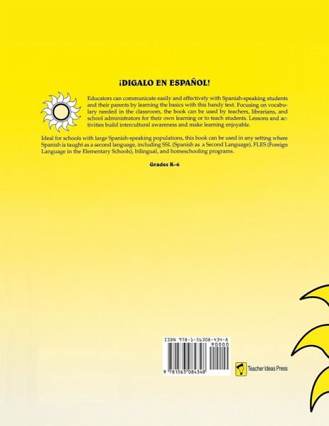 Communicate easily and effectively with Spanish-speaking students and their parents in no time! This handy book will help you learn the basics of Spanish and can also be used for teaching students the essentials. It even includes tips for parent-teacher meetings and simple notes in Spanish and English to send home with Spanish-speaking students. To simplify learning, the lessons, vocabulary, and activities are limited to what is needed for the elementary classroom. Even if you have never taken a Spanish course before, this resource will make it easy to learn the basics you need to know. Ideal for Spanish as a Second Language (SSL) classes and FLES (Foreign Language in the Elementary Schools), bilingual, and homeschooling programs, this book is a great resource for schools with Spanish-speaking populations. Grades K-6.