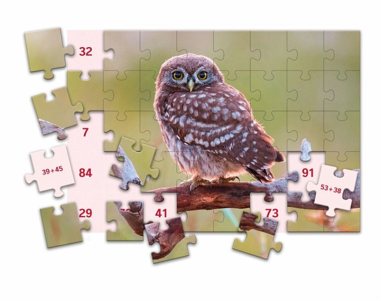 Zum Zusammensetzen der Puzzles werden die Rechenaufgaben auf der Rückseite der Puzzleteile gelöst. Die Kinder legen die Teile auf den richtigen Feldern der Grundtafel ab, Bildseite nach oben. Dadurch ergibt sich eine unmittelbare Selbstkontrolle: Passen die Bildteile, wurde richtig gerechnet. Es entsteht ein schönes farbiges Bild.