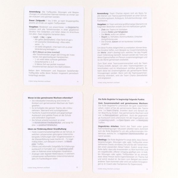Das Kartenset »Schulen agil entwickeln« ist ein handlicher und nützlicher Begleiter für Schulleitungen, die Veränderungen umsetzen möchten. Unabhängig von der Schulstufe und Schulgröße unterstützen die Karten in der Schulentwicklung, vor allem in der Zusammenarbeit von Teams sowie der Organisation und Planung von Aufgaben. Das Set widmet sich fünf Themengebieten: -Agile Treffpunkte: besonders hilfreiche Formate für Sitzungen und Dienstbesprechungen-Agile Werkzeuge: vielfältige, einfach anwendbare Werkzeuge und Methoden für den Schulleitungsalltag -Agile Rollen: Beschreibung agiler Rollen,…mehr