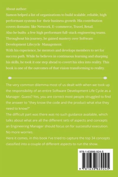 Attention all aspiring Engineering Managers! Are you tired of struggling to find the answers to the most common dilemmas you face when taking on the responsibility of an entire Software Development Life Cycle as a Manager? Do you feel like there's no guidance available to help you understand what aspects and concepts you need to focus on for successful execution? Well, fear no more! This book has been specifically written for you, with content that has been selected to help both aspiring and seasoned managers structure their experiences and gain the knowledge they need to succeed. Inside, you'll discover the top 34 concepts classified into different aspects to help you run the show with confidence. From understanding the code and product to building effective teams, managing stakeholders, and delivering successful projects, this book covers it all. But don't just take our word for it - this book has been carefully curated based on hundreds of topics that a manager should focus on, so you can rest assured that you're learning the most relevant and up-to-date information available. So what are you waiting for? Whether you're an aspiring leader looking to take your career to the next level, or a seasoned manager looking to brush up on your skills, this book is a must-read. Get your copy today and start your journey to becoming a successful Engineering Manager!