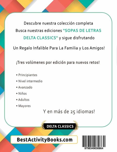 * DELTA CLASSICS - SOPA DE LETRAS EN FRANCÉS - NIVEL DE DIFICULTAD: DIFÍCIL - VOL.1 - LETRAS GRANDES - ¡100 ROMPECABEZAS DE LOS MÁS ENTRETENIDOS! (+ REGALOS GRATIS) ¡Una Edición Premium: 100 Puzles Antiestrés Para Desarrollar Una Mente Clara y Aguda! Un Regalo Ideal Para Practicar su Vocabulario. Busca Más de 2000 Palabras en FRANCÉS. DELTA CLASSICS, un Líder Mundial en Libros de Actividades. Con Más de 40 Horas de Entretenimiento - El Libro Que Estabas Buscando: - 100 JUEGOS EN FORMATO A4: Diseñados para la mejor legibilidad posible. - IMPRIMIDO SOBRE PAPEL DE CUALIDAD: La tinta no traversa. - PARA TODAS LAS EDADES (15-99 Años): Más de 2000 palabras seleccionadas atentamente. - EXPLORAR ANTES DE COMPRAR: Ninguna mala sorpresa, hojear el libro con un clic en la portada. - SOLUCIONES SIMPLIFICADAS: Todas las soluciones disponibles un formato simple y claro. - NIVEL FÁCIL & INTERMEDIO: Difícil lo suficiente para divertirse y simple para ser adictivo. - REGALOS EXTRAS: ¡Descubra BONOS exclusivos! Descubra Sopas de Letras Fáciles De Leer e Ingeniosas Para Relájate Durante Horas. ¡La Mejor Opción Para Cultivar Una Mente Ágil Mientras Te Diviertes! . ------- [ENGLISH] ------- Note: Some content in English might be missing due to length restrictions. * DELTA CLASSICS - AWESOME WORD SEARCHES IN FRENCH - LEVEL OF DIFFICULTY: HARD - VOL.1 - THE MOST CAPTIVATING LARGE PRINT PUZZLES AVAILABLE! (+ EXTRA FREEBIES) Enjoy a Premium Edition: 100 Stress-Relieving Puzzles to Promote a Sharp and Quick Brain! A Proven Gift to Practice Language. Hunt for over +2000 FRENCH Words in all Directions. From DELTA CLASSICS, a World Leader in Puzzle Book Publishing. With +40 Hours of Entertainment - This is The Book you were Looking for: - PRINTED ON HIGH-QUALITY PAPER: Use highlighters or pens, no bleed-through - LARGE PRINTS IN FULL PAGE FORMAT: Designed for the best readability possible - FUN FOR ALL AGES (15-99 YEARS): Enjoy a curated selection of +2000 words - BOOK PREVIEW AVAILABLE: No surprise, click on the cover to Look inside the book - QUICK FIND: Solutions in a clear and simple format at the end of the book - EASY & INTERMEDIATE LEVEL: Difficult enough to be challenging, easy enough to be addictive - EXTRA BONUS: Uncover our Exclusive Freebies Relax for Hours with this Easy to Read and Cleverly Crafted Puzzle Book. Get it Now, Start Having Fun & Sharpen Your Br