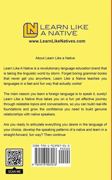 Easily Learn Conversational Spanish in Just a Few Days with the Help of Everyday Spanish Dialogues for Beginners Like You! Have you ever been in a situation where you try to talk to your Spanish friends in their native tongue, and end up being laughed at for butchering their language? We feel you! We know how embarrassing (and hilarious) this can be. Spanish is one of the most widely spoken languages today, and opens up the door to a plethora of new opportunities to view and experience the world. Not only will learning Spanish increase your ability to converse with different people across the globe, but it also gives you a winning edge over others in your career or business. When you put in the work to learn Spanish, you are broadening your horizons and giving yourself a better chance to succeed in both life and work. So, how do you get started? EASY - just add "Spanish Dialogues for Beginners" by Learn Like a Native in your toolkit! This book is crafted with beginners like you in mind. Here is where you will find simple yet stimulating Spanish language usage that is mostly in the present tense, so you will be able to effectively focus on dialogues and root verbs, as well as effortlessly understand and find patterns in subject-verb agreement. In the simple, easy-to-digest dialogues within, you will read about people going through daily life situations speaking to each other, and using the most common, helpful words and phrases in Spanish. With the help of this fun & game-changing Spanish Dialogues guide, you will: Effectively learn Spanish transition words the easiest and fastest way possible Use the right Spanish prepositions anytime, anywhere without skipping a beat Expertly ask all your burning questions using situation-appropriate Spanish terms Boost your knowledge in common Spanish present tense verbs like a native And so much more! "Spanish Short Stories for Beginners" stands out from all the other Spanish Language Guides out there because it harnesses the power of everyday Spanish dialogues. You won't find any boring lectures on grammar and endless vocabulary lists in this guide - that is a promise! This guide utilizes crazy effective Spanish immersion tools that make learning Spanish fun and easy, even without having to leave the country!Scroll up, add this book to your library, and Kick Start Your Spanish Learning Journey Today! P.S. Go at LearnLikeNatives.com and get the first ebook of the series FOR FREE!