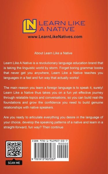 Easily Learn Conversational Spanish in Just a Few Days with the Help of Everyday Spanish Dialogues for Beginners Like You! Have you ever been in a situation where you try to talk to your Spanish friends in their native tongue, and end up being laughed at for butchering their language? We feel you! We know how embarrassing (and hilarious) this can be. Spanish is one of the most widely spoken languages today, and opens up the door to a plethora of new opportunities to view and experience the world. Not only will learning Spanish increase your ability to converse with different people across the globe, but it also gives you a winning edge over others in your career or business. When you put in the work to learn Spanish, you are broadening your horizons and giving yourself a better chance to succeed in both life and work. So, how do you get started? EASY - just add "Spanish Dialogues for Beginners" by Learn Like a Native in your toolkit! This book is crafted with beginners like you in mind. Here is where you will find simple yet stimulating Spanish language usage that is mostly in the present tense, so you will be able to effectively focus on dialogues and root verbs, as well as effortlessly understand and find patterns in subject-verb agreement. In the simple, easy-to-digest dialogues within, you will read about people going through daily life situations speaking to each other, and using the most common, helpful words and phrases in Spanish. With the help of this fun & game-changing Spanish Dialogues guide, you will: Effectively learn Spanish transition words the easiest and fastest way possible Use the right Spanish prepositions anytime, anywhere without skipping a beat Expertly ask all your burning questions using situation-appropriate Spanish terms Boost your knowledge in common Spanish present tense verbs like a native And so much more! "Spanish Short Stories for Beginners" stands out from all the other Spanish Language Guides out there because it harnesses the power of everyday Spanish dialogues. You won't find any boring lectures on grammar and endless vocabulary lists in this guide - that is a promise! This guide utilizes crazy effective Spanish immersion tools that make learning Spanish fun and easy, even without having to leave the country!Scroll up, add this book to your library, and Kick Start Your Spanish Learning Journey Today! P.S. Go at LearnLikeNatives.com and get the first ebook of the series FOR FREE!