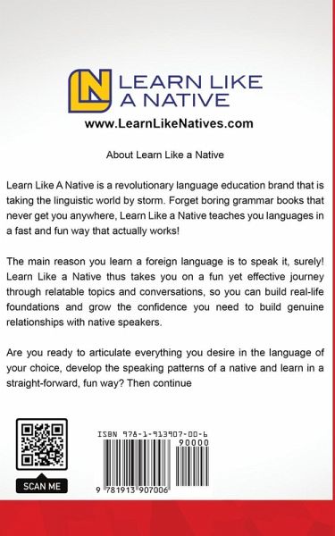 Immerse Yourself in Learning Spanish with Short Stories that Make the Language Come Alive & Easy to Learn! Want to learn Spanish the easiest and most exciting way possible? You came to the right place! Learning a second language is a great mental exercise if you want to create new neural pathways in your brain, so you can stay quick and sharp. Plus, learning a widely spoken language - Spanish in particular - can open up a myriad of new opportunities for you in both life and work. One great obstacle that English speakers face when learning Spanish is that they are in an environment where they can't fully immerse themselves in the language learning process. And that's why "Spanish Short Stories for Beginners" by Learn Like a Native is perfect for beginners like you! "Spanish Short Stories for Beginners" harnesses the power of a great tale in fast-tracking your learning process. It has several uniquely structured Spanish-to-English short stories that are saturated with over 100 simple, easy-to-digest dialogues and daily used phrases, so you can seamlessly learn the language, even as you drive towards work! In the stories within, you will see people speaking to each other, going through daily life situations, and using the most common, helpful words and phrases in Spanish. Learn Like a Native crafted this book with beginners in mind. Here is where you will find simple yet stimulating Spanish language usage that is mostly in the present tense, so you will be able to effectively focus on dialogues and root verbs, as well as effortlessly understand and find patterns in subject-verb agreement. Over the course of this fun & game-changing guide, beginners like you will: Effortlessly learn basic Spanish with the help of cleverly structured short stories for beginners Quickly absorb Spanish terms for possessing common everyday objects Cleverly incorporate prepositions and common present tense verbs for any situation Easily relay your emotions, questions, likes, and dislikes in Spanish anytime, anywhere And so much more! Forget about boring lectures on grammar and endless vocabulary lists. With the help of this book, English speakers like you can easily learn Spanish and immerse themselves in it without having to leave the country! Scroll up, add this book to your cart, and Start Learning Spanish Today!