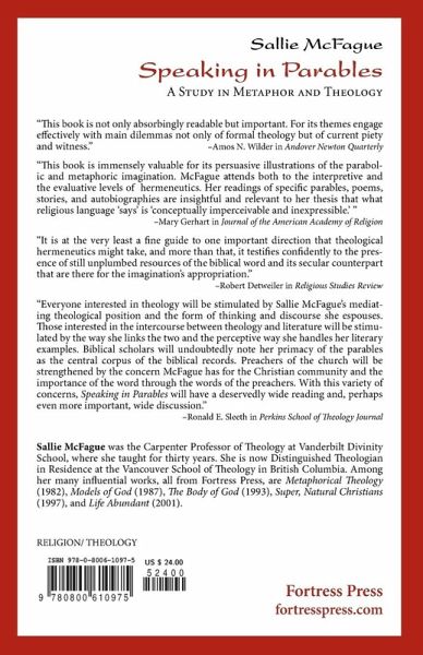 "This book is not only absorbingly readable but important. For its themes engage effectively with main dilemmas not only of formal theology but of current piety and witness." - Amos N. Wilder, Andover Newton Quarterly "This book is immensely valuable for its persuasive illustrations of the parabolic and metaphoric imagination. McFague attends both to the interpretive and the evaluative levels of hermeneutics. Her readings of specific parables, poems, stories, and autobiographies are insightful and relevant to her thesis that what religious language 'says' is 'conceptually imperceivable and inexpressible.'" - Mary Gerhart, Journal of the American Academy of Religion "It is at the very least a fine guide to one important direction that theological hermeneutics might take, and more than that, it testifies confidently to the presence of still unplumbed resources of the biblical word and its secular counterpart that are there for the imagination's appropriation." - Robert Detweiler, Religious Studies Review "Everyone interested in theology will be stimulated by Sallie McFague's mediating theological position and the form of thinking and discourse she espouses. Those interested in the intercourse between theology and literature will be stimulated by the way she links the two and the perceptive way she handles her literary examples. Biblical scholars will undoubtedly note her primacy of the parables as the central corpus of the biblical records. Preachers of the church will be strengthened by the concern McFague has for the Christian community and the importance of the word through the words of the preachers. With this variety of concerns, Speaking in Parables will have a deservedly wide reading and, perhaps even more important, wide discussion." - Ronald E. Sleeth, Perkins School of Theology Journal