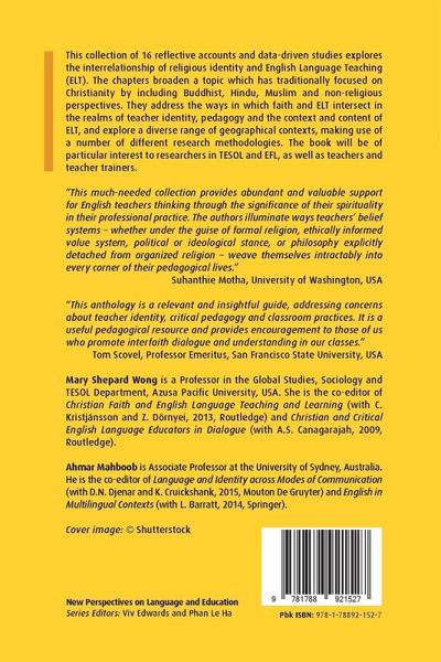 This collection of 16 reflective accounts and data-driven studies explores the interrelationship of religious identity and English Language Teaching (ELT). It addresses the ways in which faith and ELT intersect in the realms of teacher identity, pedagogy, and the context and content of ELT.