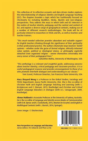 This collection of 16 reflective accounts and data-driven studies explores the interrelationship of religious identity and English Language Teaching (ELT). It addresses the ways in which faith and ELT intersect in the realms of teacher identity, pedagogy, and the context and content of ELT.