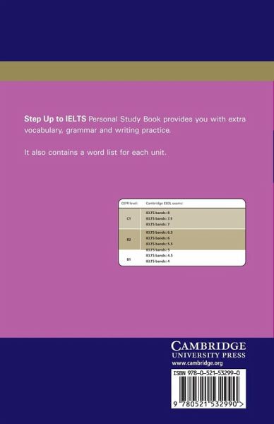 Step Up to IELTS covers essential exam skills and language for IELTS in approximately sixty hours of teaching time, and familiarises students quickly with the exam. The course covers both the Academic and General Training modules. Shorter, achievable exam-type tasks build students' exam skills, before students try the more challenging tasks at authentic test level. The test practice sections at the end of each unit together constitute a whole sample IELTS test. This pocket-sized Personal Study Book provides extra vocabulary, grammar and writing practice.