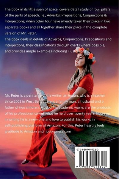The book in its little span of space, covers detail study of four pillars of the parts of speech, i.e., Adverbs, Prepositions, Conjunctions & Interjections. It includes the discussion of definition, classification, forms and formation of the above four. Besides, it provides space to discuss Degrees, Position of Adverbs in sentences; presents the role of Adverbial Function of Prepositions, role of Conjunctions to form sentences; and how different Interjections are formed and they express diverse emotions and feelings of a speaker.