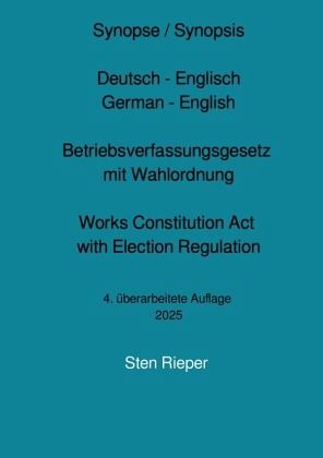 Synoptische Darstellung des Betriebsverfassungsgesetzes und der Wahlordnung (BetrVG und WO) in deutscher und englischer Sprache. Betriebsverfassungsgesetz in der Fassung der Bekanntmachung vom 25. September 2001 (BGBl. I S. 2518), das zuletzt durch Artikel 1 des Gesetzes vom 19. Juli 2024 (BGBl. 2024 I Nr. 248) geändert worden ist. Die Übersetzung berücksichtigt die Änderung(en) des Gesetzes durch Artikel 1 des Gesetzes vom 19. Juli 2024 (BGBl. 2024 I Nr. 248).Erste Verordnung zur Durchführung des Betriebsverfassungsgesetzes (Wahlordnung - WO) vom 11. Dezember 2001 (BGBl. I S. 3494), die durch Artikel 1 der Verordnung vom 08. Oktober 2021 (BGBl. I S. 4640) geändert worden ist. Die Übersetzung berücksichtigt die Änderung(en) der Verordnung durch die Verordnung zur Änderung der Wahlordnung, der Wahlordnung Seeschiffart und der Verordnung zur Durchführung der Betriebsratswahlen bei den Postunternehmen vom 08. Oktober 2021 (BGBl. S. 4640).Die Übersetzungen sind durch den Autor erfolgt. The Translations are provided by the author.