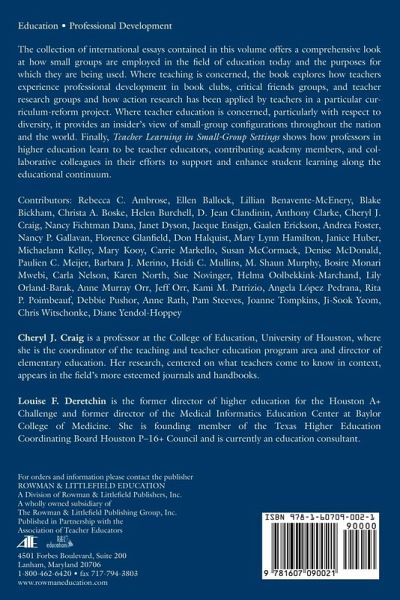 Chapter 1 Foreword Chapter 2 Introduction Part 3 Teaching Chapter 4 Overview and Framework Chapter 5 Collaborations and Conversations in Communities of Learning: Professional Development that Matters Chapter 6 Constructing Practice through Conversation in Professional Learning Groups: Variations on a Theme Chapter 7 What Makes Some Learning Communities So Effective? And How Can I Support My Own? Chapter 8 Commingling Action Research and Professional Learning Communities: An Illustratio of Key Components Chapter 9 Posing Questions: Teacher Research Groups in Search of Answers Chapter 10 Creating Learning Communities: An Interrogation of a Sustainable Professional Development Model Chapter 11 Summary and Implications Part 12 Teacher Education Chapter 13 Overview and Framework Chapter 14 Cohort Learning and Complexity Thinking: The Case of the CITE Teacher Education Programme Chapter 15 Seminars as Small Group Learning Sites in Teacher Preparation Chapter 16 Preservice Candidates "Looking at Student Work" in a Professional Development School Setting Chapter 17 Tracing Learning in Collaborative Reflection Meetings of Student Teachers Chapter 18 Cracks in the Mirror: Discovering Teacher Candidates' Strategies for Resisting Reflection Chapter 19 Exploring Significance and Benefits of Group Learning for Developing Cultural Competence with Teacher Candidates Chapter 20 Beginning Teachers' Inquiry in Linguistically Diverse Classrooms: Exploring the Power of Small Learning Communities Chapter 21 "It Could Take 40 Minutes, It Could Take 3 Days": Authentic Small Group Learning for Aboriginal Education Chapter 22 Summary and Implications Part 23 Higher Education Chapter 24 Overview and Framework Chapter 25 The Somehow of Teaching: Small Groups, Collaboration, and Self-Study of Teacher Education Practices Chapter 26 The Research Issues Table: A Place of Possibilities for the Education of Teacher Educators Chapter 27 Voices from a Reflective Space: Teacher Educators Reflect on Practice Chapter 28 The Faculty Academy: A Place for Grounding and Growth Chapter 29 Summary and Implications Chapter 30 Afterword