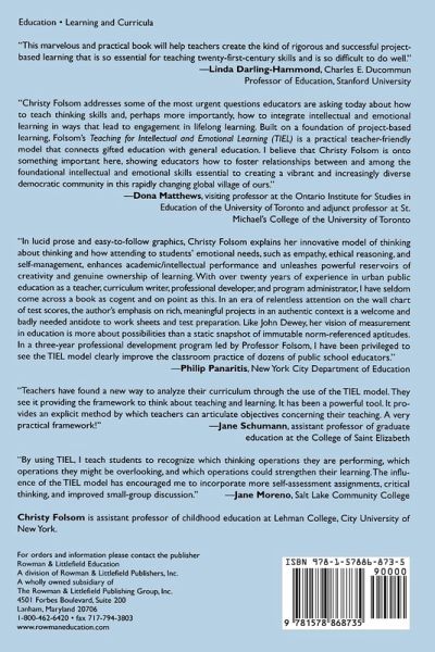Teaching for Intellectual and Emotional Learning (TIEL): A Model for Creating Powerful Curriculum will help teachers and teacher educators meet their goals of mastery in basic skills and content knowledge as well as intellectual and social emotional development. Sharing the experiences of real teachers who changed their teaching and helped their students understand their learning and develop skills of self-direction and collaboration, Folsom introduces a powerful visual model that helps teachers develop standards-based curriculum that includes social-emotional learning.
