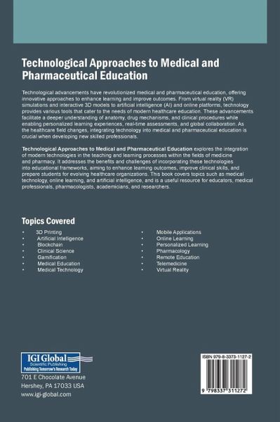 Technological advancements have revolutionized medical and pharmaceutical education, offering innovative approaches to enhance learning and improve outcomes. From virtual reality (VR) simulations and interactive 3D models to artificial intelligence (AI) and online platforms, technology provides various tools that cater to the needs of modern healthcare education. These advancements facilitate a deeper understanding of anatomy, drug mechanisms, and clinical procedures while enabling personalized learning experiences, real-time assessments, and global collaboration. As the healthcare field changes, integrating technology into medical and pharmaceutical education is crucial when developing new skilled professionals. Technological Approaches to Medical and Pharmaceutical Education explores the integration of modern technologies in the teaching and learning processes within the fields of medicine and pharmacy. It addresses the benefits and challenges of incorporating these technologies into educational frameworks, aiming to enhance learning outcomes, improve clinical skills, and prepare students for evolving healthcare organizations. This book covers topics such as medical technology, online learning, and artificial intelligence, and is a useful resource for educators, medical professionals, pharmacologists, academicians, and researchers.