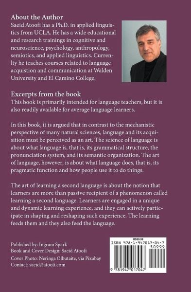 This book is primarily intended for language teachers, but it is also readily available for average language learners. In this book, it is argued that in contrast to the mechanistic perspective of many natural sciences, language and its acquisition must be perceived as an art. The science of language is about what language is, that is, its grammatical structure, the pronunciation system, and its semantic organization. The art of language, however, is about what language does, that is, its pragmatic function and how people use it to do things. The art of learning a second language is about the notion that learners are more than passive recipients of a phenomenon called learning a second language. Learners are engaged in a unique and dynamic learning experience, and they can actively participate in shaping and reshaping such experience. The learning feeds them and they also feed the language.