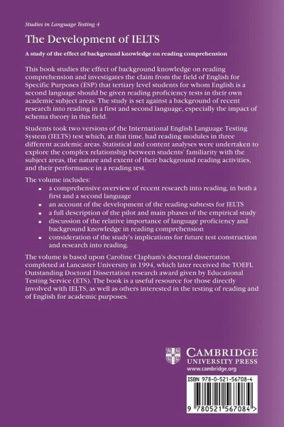 This book studies the effect of background knowledge on reading comprehension and investigates whether tertiary level English language students should be given reading proficiency tests in their own academic subject areas.