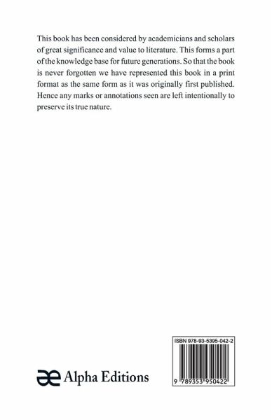 This book has been considered by academicians and scholars of great significance and value to literature. This forms a part of the knowledge base for future generations. So that the book is never forgotten we have represented this book in a print format as the same form as it was originally first published. Hence any marks or annotations seen are left intentionally to preserve its true nature.