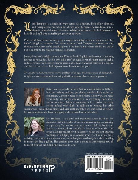 Lord Tempesto is a snake in every sense. As a human, he is slimy, deceitful, and manipulative, but when he's denied what he wants, he transforms into a gigantic, powerful snake. He wants nothing more than to rule the kingdom himself, and he'll stop at nothing to get what he wants. Princess Melina is meant to rule her father's kingdom someday, but she doesn't want to do it alone. However, the search for a noble suitor brings a monster to the palace gates. When monster Lord Tempesto captures her and threatens to devour her beloved kingdom if she doesn't marry him, she has no choice but to submit to the repulsive monster's demands. James, the son of a knight, hears about Princess Melina's plight and sets out on the long journey to rescue her. But his own skills aren't enough to win the fight against such a ruthless, powerful monster, and it takes teamwork between the captive and her rescuer to save the kingdom from the monster for good. The Knight in Battered Armor shows children of all ages the importance of doing what is right no matter what and not being afraid to protect what is most important.