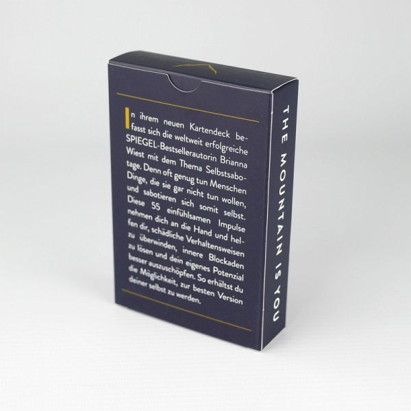 Nichts behindert dich in deinem Leben mehr als du dich selbst.Es ist an der Zeit, das zu ändern!In ihrem neuen Kartendeck befasst sich die weltweit erfolgreiche SPIEGEL-Bestsellerautorin Brianna Wiest mit dem Thema Selbstsabotage. Denn oft genug tun Menschen Dinge, die sie gar nicht tun wollen, und sabotieren sich somit selbst.- Von der Autorin des SPIEGEL-Bestsellers "101 Essays, die dein Leben verändern werden"- 55 einfühlsame und hilfreiche Impulse, Selbstsabotage zu vermeiden- Handliches Kartendeck, praktisches FormatDiese 55 einfühlsamen Impulse nehmen dich an die Hand und helfen dir, schädliche Verhaltensweisen zu überwinden, innere Blockaden zu lösen und dein eigenes Potenzial besser auszuschöpfen. So erhältst du die Möglichkeit, zur besten Version deiner selbst zu werden. Denn du hast ein glückliches und erfülltes Leben verdient!