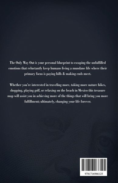 The Only Way Out is your personal blueprint to escaping the unfulfilled emotions that reluctantly keep humans living a mundane life where their primary focus is paying bills & making ends meet. Whether you're interested in traveling more, taking more nature hikes, shopping, playing golf, or relaxing on the beach in Mexico this treasure map will assist you in achieving more of the things that will bring you more fulfillment; ultimately, changing your life forever.