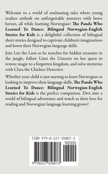 Welcome to a world of enchanting tales where young readers embark on unforgettable journeys with brave heroes, all while learning Norwegian! The Panda Who Learned To Dance: Bilingual Norwegian-English Stories for Kids is a delightful collection of bilingual short stories designed to captivate children's imaginations and boost their Norwegian language skills. Join Leo the Lion as he searches for hidden treasures in the jungle, follow Unni the Unicorn on her quest to restore magic to a forgotten kingdom, and solve mysteries with Clara the Chicken Detective. Whether your child is just starting to learn Norwegian or looking to improve their language skills, The Panda Who Learned To Dance: Bilingual Norwegian-English Stories for Kids is the perfect companion. Dive into a world of bilingual adventures and watch as their love for reading and Norwegian language learning grows!