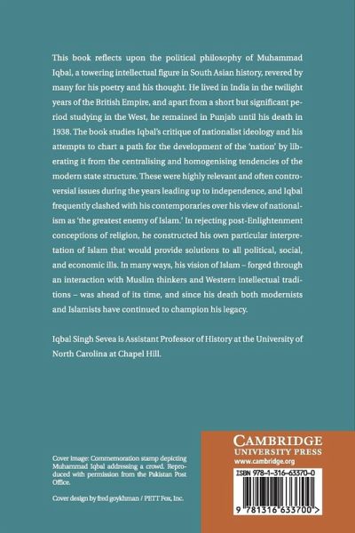 This book reflects upon the political philosophy of Muhammad Iqbal, a towering intellectual figure in South Asian history, revered by many for his poetry and his thought. He lived in India in the twilight years of the British Empire and, apart from a short but significant period studying in the West, he remained in Punjab until his death in 1938. The book studies Iqbal's critique of nationalist ideology and his attempts to chart a path for the development of the 'nation' by liberating it from the centralizing and homogenizing tendencies of the modern state structure. Iqbal frequently clashed with his contemporaries over his view of nationalism as 'the greatest enemy of Islam'. He constructed his own particular interpretation of Islam - forged through an interaction with Muslim thinkers and Western intellectual traditions - that was ahead of its time, and since his death both modernists and Islamists have continued to champion his legacy.