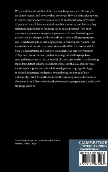 Why are different varieties of the Japanese language used differently in social interaction, and how are they perceived? How do honorifics operate to express diverse affective stances, such as politeness? Why have issues of gendered speech been so central in public discourse, and how are they reflected and refracted in language use as social practice? This book examines Japanese sociolinguistic phenomena from a fascinating new perspective, focusing on the historical construction of language norms and its relationship to actual language use in contemporary Japan. This socio-historically sensitive account stresses the different choices which have shaped Japanese and Western sociolinguistics and how varieties of Japanese, honorifics and politeness, and gendered language have emerged in response to the socio-political landscape in which a modernizing Japan found itself.