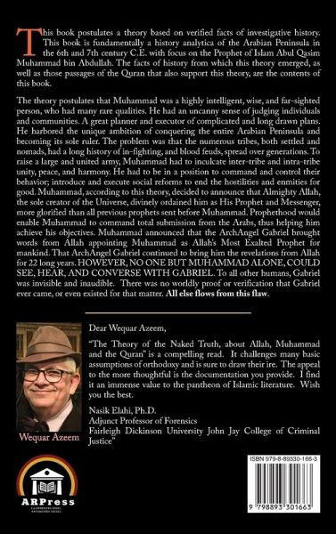 This book postulates a theory based on verified facts of investigative history. This book is fundamentally a history analytica of the Arabian Peninsula in the 6th and 7th century C.E. with focus on the Prophet of Islam Abul Qasim Muhammad bin Abdullah. The facts of history from which this theory emerged, as well those passages of the Quran that also support this theory, are the contents of this book. The theory postulates that Muhammad was a highly intelligent, wise, and far-sighted person, who had many rare qualities. He had an uncanny sense of judging individuals and communities. A great planner and executor of complicated and long drawn plans. He harbored the unique ambition of conquering the entire Arabian Peninsula and becoming its sole ruler. The problem was that the numerous tribes, both settled and nomads, had a long history of in-fighting, and blood feuds, spread over generations. To raise a large and united army, Muhammad had to inculcate inter-tribe and intra-tribe unity, peace, and harmony. He had to be in a position to command and control their behavior; introduce and execute social reforms to end the hostilities and enmities for good. Muhammad, according to this theory, decided to announce that Almighty Allah, the sole creator of the Universe, divinely ordained him as His Prophet and Messenger, more glorified than all previous prophets sent before Muhammad. Prophethood would enable Muhammad to command total submission from the Arabs, thus helping him achieve his objectives. Muhammad to command total submission from the Arabs, thus helping him achieve his objectives. Muhammad announced that the ArchAngel Gabriel brought words from Allah appointing Muhammad as Allah's Most Exalted Prophet for mankind. That ArchAngel Gabriel continued to bring him the revelations from Allah for 22 long years. HOWEVER, NO ONE BUT MUHAMMAD ALONE, COULD SEE, HEAR, AND CONVERSE WITH GABRIEL. To all other humans, Gabriel was invisible and inaudible. There was no worldly proof or verification that Gabriel ever came, or even existed for that matter. All else flows from this flaw.