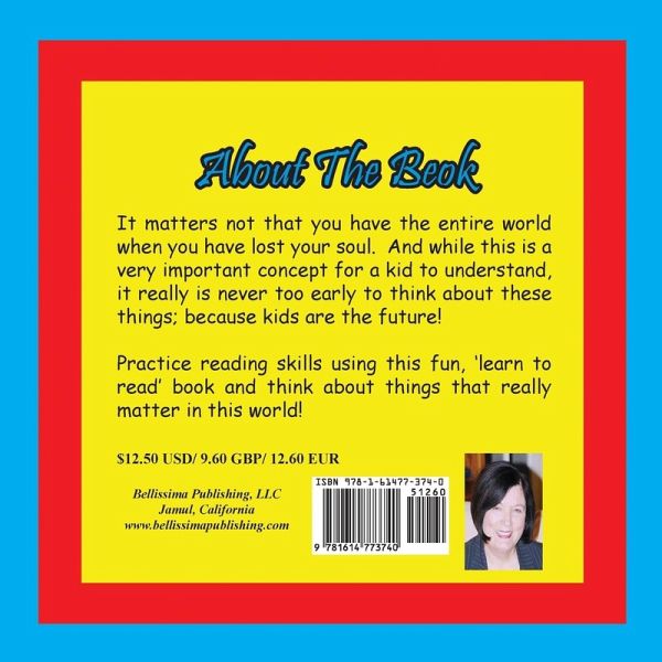 What do you have if you gain the world, but you give up your soul? The answer is that you will have nothing! And even the cow, the horse, the elephant, the bee, the sheep, the cat and the dog, the giraffe, and the monkey in the apple tree with this will agree (even if they aren't human beings). And this is why if you care, you should share! Written by the award winning author, attorney and former teacher, Penelope Dyan, this 'fun, 'learn to read' book is meant to get a kid thinking and caring and sharing. And if you are a kid who likes to have fun learning, then this book is perfect for you, especially if you like to think about some important life lessons! Filled with word repetition, word repetition and rhyme, this book is perfectly sized to fit inside a kid-sized backpack! And its extra large print is perfect for young eyes to easily see! Use this book to think about all the things that are important you; and then try your hand at making a book of your very own, all about something important to you! When you are finished, go to Bellissimavideo's YouTube channel and watch the free music video that goes with this book for more learning fun!