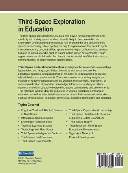 The third space can simultaneously be a safe haven for experimentation and creativity and a risky space in which there is likely to be contestation and uncertainty. Understanding the strategic role in examining and activating third spaces is necessary, which applies not only to organizations that seek to apply the contemporary concept of third space in either digital or face-to-face settings but also to individuals who exist as actors in third-space environments. These organizations and individuals often have to perform outside of the first space, a dominant social or settler colonial identity group. Third-Space Exploration in Education investigates the knowledge, relationships, legitimacies, and languages that problematize and accommodate the paradoxes, tensions, and possibilities at the heart of understanding education-related third-space environments. The book is useful in providing insights and support for readers concerned with the creation, management, negotiation, or reconceptualization of expertise, knowledge, information, and organizational development within culturally diverse third-space communities and environments. This reference work is ideal for audiences in various disciplines centering on education as well as interdisciplinary areas or areas that can relate to education such as ethnic studies, sociology, psychology, medicine, technology, and business.