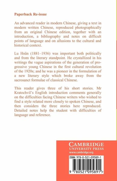 An advanced reader in modern Chinese, giving a text in a modern written Chinese, reproduced photographically from an original Chinese edition, together with an introduction, bibliography and notes on difficult points of language and allusions to the cultural and historical context. Lu Hsün (1881-1936) was important both politically and from the literary standpoint. He crystallized in his writings the vague aspirations of the generation of progressive young Chinese in the first cultural revolution of the 1920s; and he was a pioneers in the formulation of a new literary style which broke away from the sacrosanct formulae of classical Chinese. This reader gives three of his short stories. Mr Kratochvil's English introduction comments generally on the difficulties facing Chinese writers who wished to find a style related more closely to spoken Chinese, and then considers the three stories here reproduced.