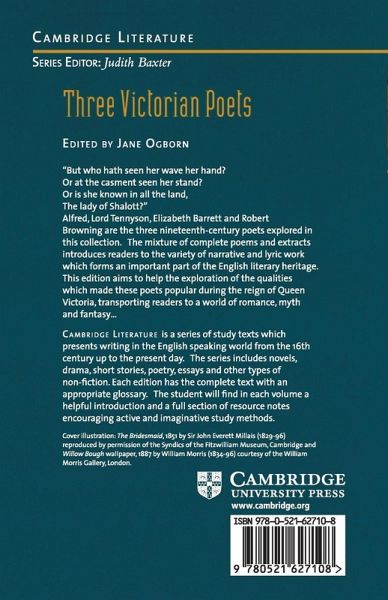 Part of the Cambridge Literature series, THREE VICTORIAN POETS presents works by Alfred Lord Tennyson, Elizabeth Barrett Browning, and Robert Browning. The series draws on various aspects of current literary theory, emphasizing the critical and dynamic relationship between reader and text.