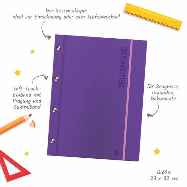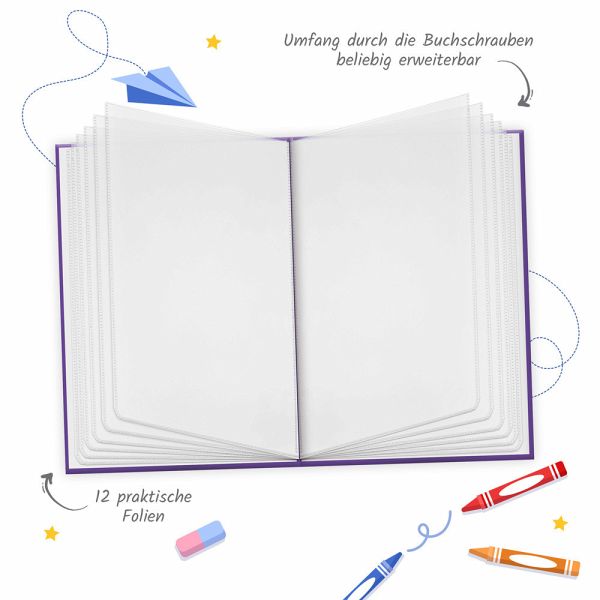 Mithilfe dieser praktischen Zeugnismappe sind alle wichtigen Dokumente zuverlässig und sicher geschützt. Hier ist Platz für Zeugnisse, Urkunden und alle anderen wichtigen Formulare, die kompakt aufbewahrt werden sollen. Der Umfang ist durch die Buchschrauben erweiterbar. Das ideale Geschenk zur Einschulung oder zum Stufenwechsel.