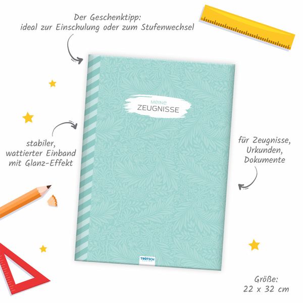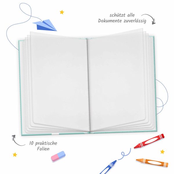 Mithilfe dieser praktischen und farbenfrohen Zeugnismappe sind alle wichtigen Dokumente zuverlässig und sicher geschützt. Hier ist Platz für Zeugnisse, Urkunden und alle anderen wichtigen Formulare, die kompakt aufbewahrt werden sollen. Das ideale Geschenk zur Einschulung oder zum Stufenwechsel.