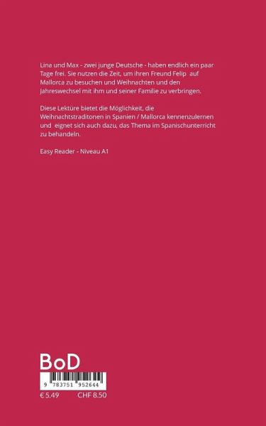 Mit traumhaften Lektüren Spanisch vertiefen und dabei Land und Leute kennenlernen. Lina und Max - zwei junge Deutsche - nutzen die Gelegenheit, Weihnachten und den Jahreswechsel mit ihrem Freund Felip und dessen Familie zu verbringen. Diese Easy -Reader- Lektüre in spanischer Sprache bietet die Möglichkeit, die Weihnachtstraditonen in Spanien / Mallorca kennenzulernen und eignet sich auch dazu, das Thema im Spanischunterricht zu behandeln.Easy Reader Lektüre auf Spanisch - Niveau A1 - Teil der Reihe "Sueños de..."