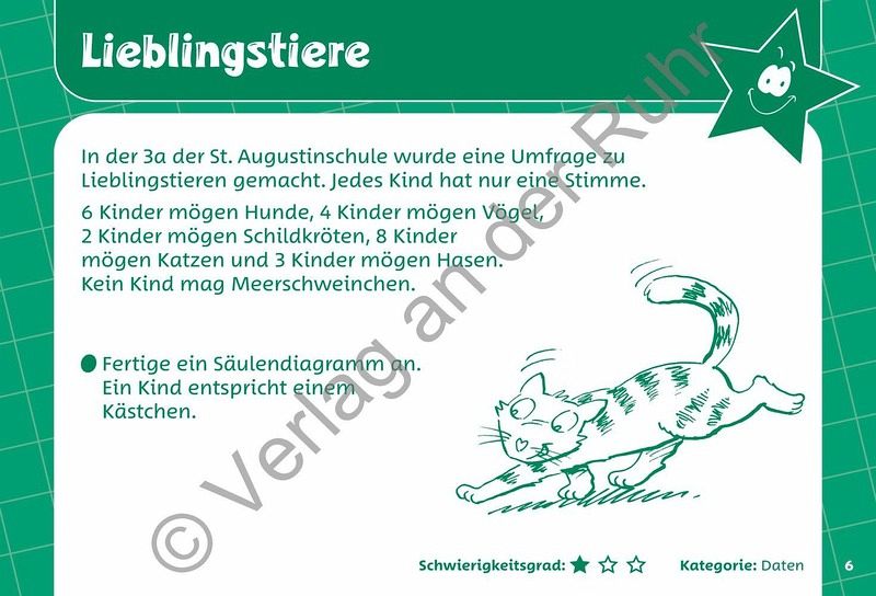 Unterrichtsmaterial (Karteikarten) für Lehrer und Lehrerinnen an Grundschulen, Förderschulen, Mathematik, Klasse 3-4 +++ Sachaufgaben mal anders! Die bei vielen Kindern oft eher unbeliebten "Textaufgaben" finden Sie hier als herausfordernde Challenge im praktischen Karteikartenformat. Einfach die Karten an der Tafel aufhängen, die Kinder eine Aufgabe schnappen lassen und los geht's! Durch das Lösen der Aufgaben können die Schülerinnen und Schüler, je nach Schwierigkeitsgrad der Aufgabe, eine bestimmte Anzahl von Sternen sammeln. Die Rahmenbedingungen bestimmen Sie dabei selbst. Das Kind, das schließlich die meisten Sterne gesammelt hat, ist "Sachaufgaben-Champion" - bis zur nächsten Challenge ... Dank der verschiedenen Niveaustufen werden hierbei auch die "schwächeren" Schülerinnen und Schüler angesprochen. Die Aufgaben sind zudem alltagsbezogen und behandeln alle wichtigen Bereiche des Mathematikunterrichts. Die ebenfalls vorhandenen Lösungen ermöglichen eine unkomplizierte Selbstkontrolle. Selbstverständlich ist die Kartei auch außerhalb der Challenge einsetzbar - beispielweise als Einstieg in die Stunde, für die Wochenplanarbeit oder als Freiarbeitsmaterial. So wecken Sie spielerisch den Spaß am Sachrechnen!