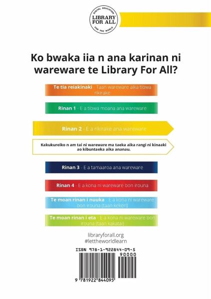 Veitu loves to cook. She is making a tasty soup for her family. In go the vegetables. In go the chicken bones. Bubble, bubble, bubble goes the pot! E taatangira te kuuka Veitu. E kuukana te tuubu ae e kangkang ibukiia ana utuu. Are i nanona te uaanikai. Are i nanona riin te moa. E buroburo, e buroburo, e buroburo i nanon te bwaata! Your purchase of this book supports Library For All in its mission to make knowledge available to all, equally.