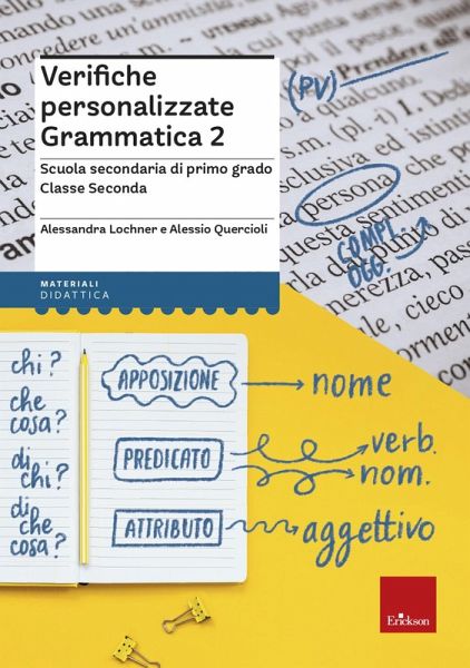 La serie di volumi verifiche personalizzate offre agli insegnanti di scuola secondaria di primo grado un¿ampia e accurata scelta di materiali per la valutazione degli alunni e delle alunne sui principali contenuti disciplinari. Ogni verifica è proposta in tre livelli diversificati di complessità, che garantiscono una personalizzazione efficace dell¿apprendimento, in un¿ottica pienamente inclusiva. Ciascuna verifica comprende, inoltre, una sezione metacognitiva per l¿autovalutazione, che stimola le alunne e gli alunni a riflettere sul lavoro svolto e sul livello di padronanza raggiunto nei vari argomenti. I materiali sono rivolti al docente e alla docente di italiano, ma sono adatti anche al sostegno: le verifiche, che non sono abbinate a un preciso libro di testo, sono costruite tenendo presenti i diversi e più importanti aspetti dei vari argomenti, così da poter essere facilmente utilizzate nel corso dell¿anno scolastico. Gli argomenti trattati nel volume: Frasi semplici o proposizioni, Soggetto, Predicato, Attributo, apposizione e complementi, Complemento oggetto e complementi predicativi, Complementi indiretti (specificazione, termine, agente, causa efficiente, luogo, origine, allontanamento, tempo, modo, mezzo, causa, vantaggio, compagnia, rapporto, argomento, materia, qualità, età, limitazione, ecc.). Das Urheberrecht an bibliographischen und produktbeschreibenden Daten und an den bereitgestellten Bildern liegt bei Informazioni Editoriali, I.E. S.r.l., oder beim Herausgeber oder demjenigen, der die Genehmigung erteilt hat. Alle Rechte vorbehalten.