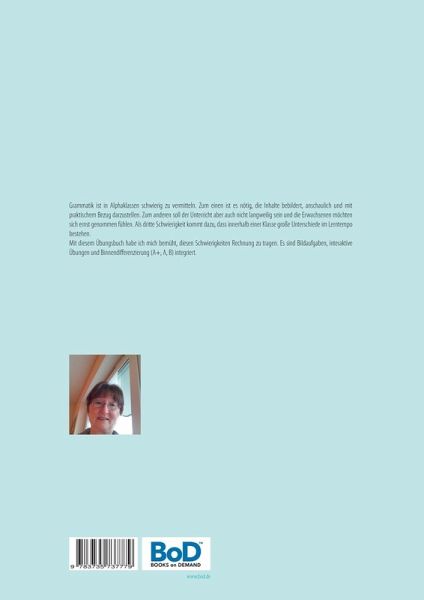 Grammatik ist in Alphaklassen schwierig zu vermitteln. Zum einen ist es nötig, die Inhalte bebildert, anschaulich und mit praktischem Bezug darzustellen. Zum anderen soll der Unterricht aber auch nicht langweilig sein und die Erwachsenen möchten sich ernst genommen fühlen. Als dritte Schwierigkeit kommt dazu, dass innerhalb einer Klasse große Unterschiede im Lerntempo bestehen. Mit diesem Übungsbuch habe ich mich bemüht, diesen Schwierigkeiten Rechnung zu tragen. Es sind Bildaufgaben, interaktive Übungen und Binnendifferenzierung (A+, A, B) integriert.