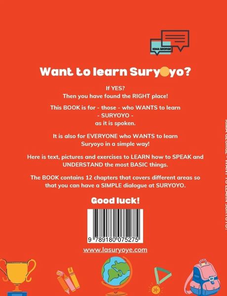 Want to learn Suryoyo?If yes? Then you've found the right place!This book is for - those - who want to learn- Suryoyo - as it is spoken.It is also for EVERYONE who wants to learnSuryoyo in a simple way!Here is text, pictures and exercises to learn how to speak and understand the most basic things.The book contains 12 chapters that covers different areas sothat you can have a simpler dialogue at Suryoyo.Good luck!