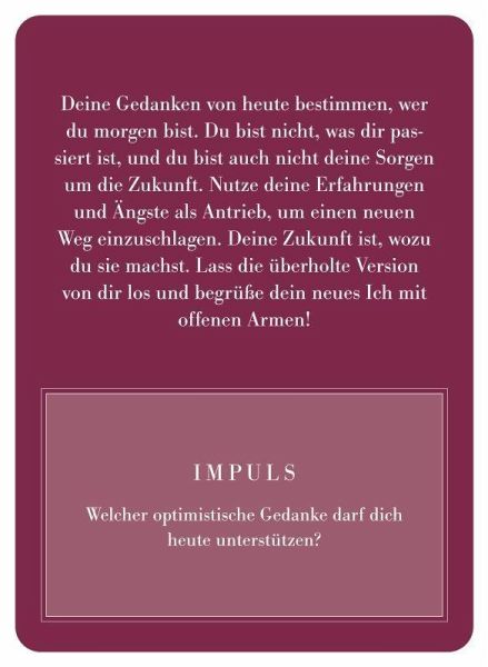 Mit Übung und Geduld gehen die Botschaften der Karten in dein Unterbewusstsein über und lassen dich die Welt mit einem mitfühlenden Blick und einem offenen Herzen erfahren.