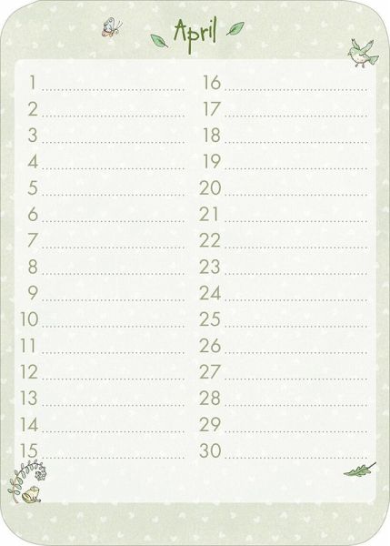 Der immerwährende Kalender sorgt dafür, dass du an die Geburtstage erinnert wirst und jahresunabhängig organisiert bist. Ein ideales Geschenk für alle, die sich von den süßen Hasen durch das Jahr begleiten lassen wollen.