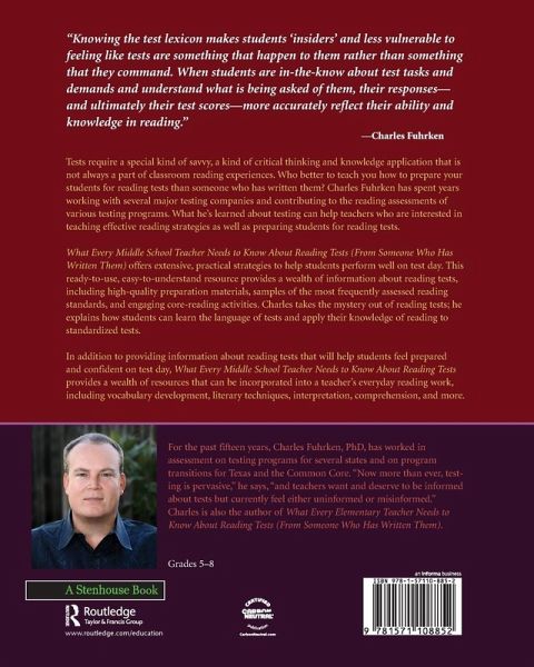 Charles Fuhrken. For the past twelve years, Charles has worked in assessment for three major test publishers and on testing programs for several states, as well as on norm-referenced achievement tests. After completing a Ph.D. in curriculum and instruction at the University of Texas at Austin, Charles began writing What Every Elementary Teacher Needs to Know About Reading Tests. "From talking to teachers in various arenas," he says, "I've come to understand that teachers want and deserve to be informed about tests, but currently they feel either uninformed or misinformed."