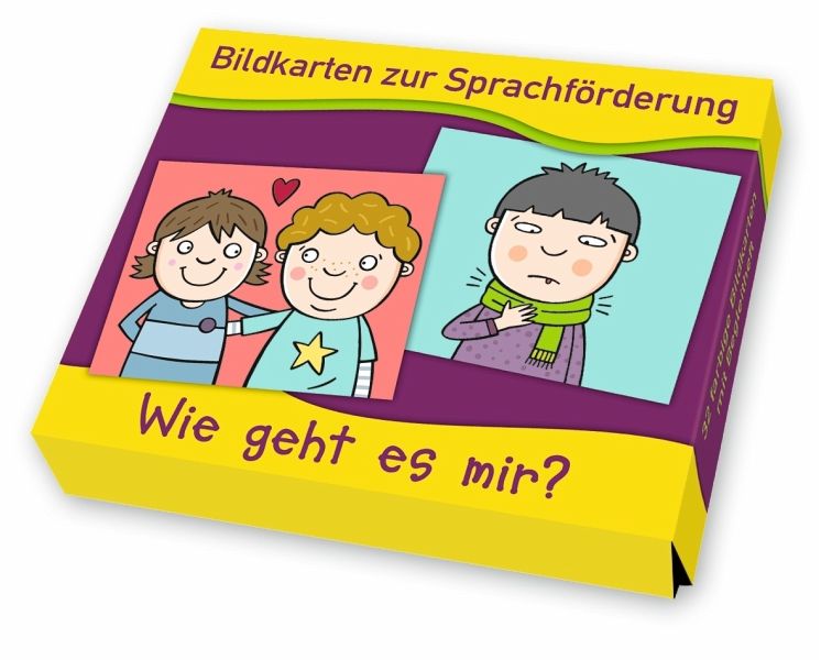 Bildkarten für Erzieher und Erzieherinnen in Kindertagesstätten, Sprachförderkräfte, Lehrer und Lehrerinnen an Grundschulen und im DaF/DaZ-Bereich, geeignet für 3-7 Jahre+++ Ich bin verliebt. Oder: Mein Hals tut weh. Über Gefühle und körperliches Befinden zu sprechen, fördert die sozial-emotionale Entwicklung der Kinder. Mit diesen Bildkarten lernen sie, ihre Empfindungen zu erkennen und zu benennen. Das wenden sie in vielen kreativen Spielsituationen an. Die Situationen aus dem Alltag regen dabei zum Erzählen an.
