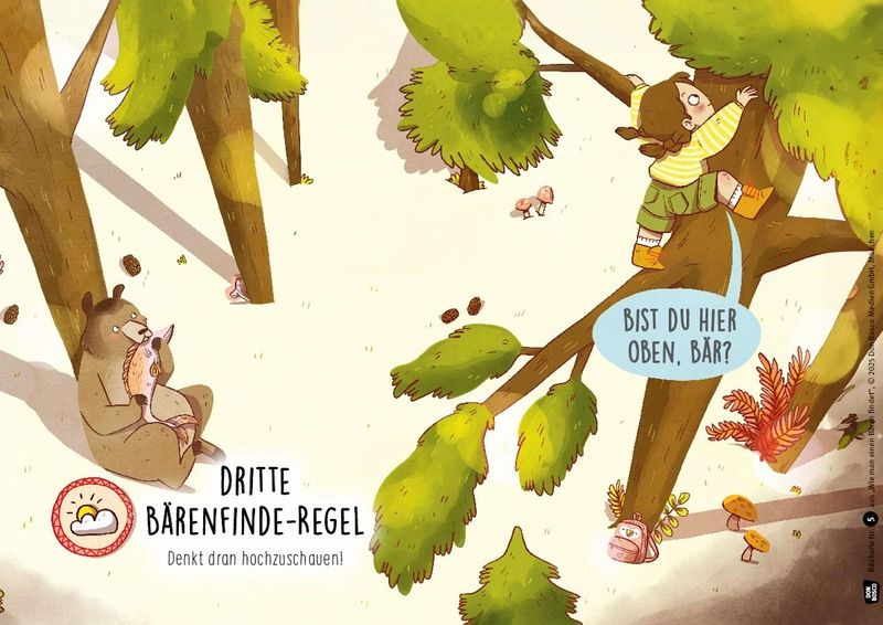 Fährten lesen und Spuren suchen kann unsere gewitzte Protagonistin doch schon lange! Mit Fernglas, Lupe und Kompass im Gepäck stürzt sich das kleine Mädchen mitten ins Abenteuer und geht auf Bärenjagd. Gerne verrät sie uns jeden ihrer Tricks, denn sie weiß schließlich genau, worauf es bei der Suche ankommt. Aber könnte es sein, dass da jemand ein Versteckspiel mit ihr treibt?