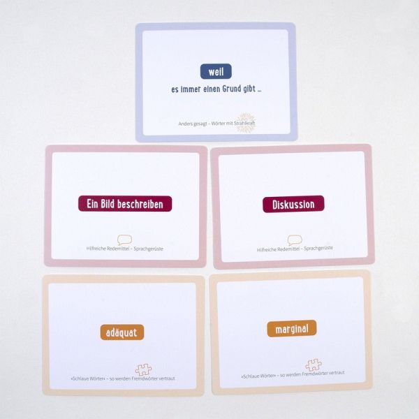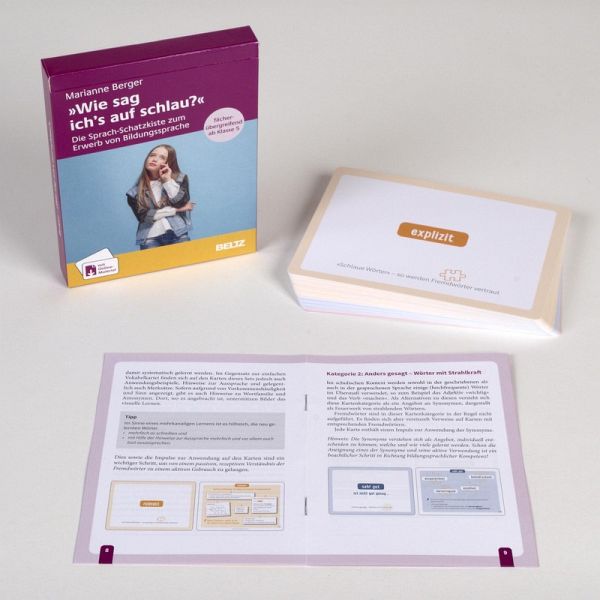Bildungssprache ist der Schlüssel zur Teilhabe an Bildungsprozessen und Voraussetzung für gelingende Chancengleichheit. Vielen Schüler:innen, die sich im Alltag mühelos verständigen können, fehlt der Zugang zur Schul- und Bildungssprache. Dies birgt die Gefahr, dass sie unterschätzt werden und unter ihren Möglichkeiten bleiben. Hier setzt das Kartenset an. Die 40 Karten unterstützen Schüler:innen der Sekundarstufe I beim Erwerb der Bildungssprache und motivieren zur Umsetzung: von hilfreichen Redemitteln über »schlaue Wörter« (Fremdwörter) bis hin zu »Wörtern mit Strahlkraft« (Synonyme) finden sich vielfältige sprachliche Anregungen und zudem kleine Übungen. Sie vermitteln Schüler:innen Sicherheit und Freude, sich bildungssprachlich auszudrücken. Das Set eignet sich für Schüler:innen mit Deutsch als Erst- und Zweitsprache und ist fächerübergreifend einsetzbar. Das Booklet gibt methodische Anregungen für den Einsatz der Karten im Unterricht.