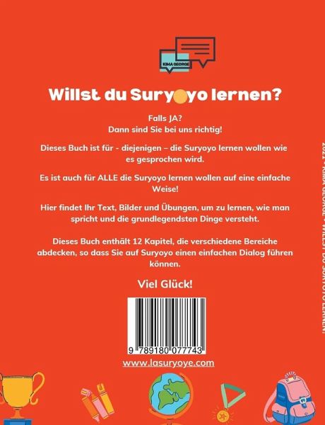 Willst du Suryoyo lernen? Falls JA? Dann sind Sie bei uns richtig! Dieses Buch ist für, diejenigen, die Suryoyo lernen wollen wie es gesprochen wird. Es ist auch für ALLE die Suryoyo lernen wollen auf eine einfache Weise! Hier findet Ihr Text, Bilder und Übungen, um zu lernen, wie man spricht und die grundlegendsten Dinge versteht. Dieses Buch enthält 12 Kapitel, die verschiedene Bereiche abdecken, so dass Sie auf Suryoyo einen einfachen Dialog führen können.