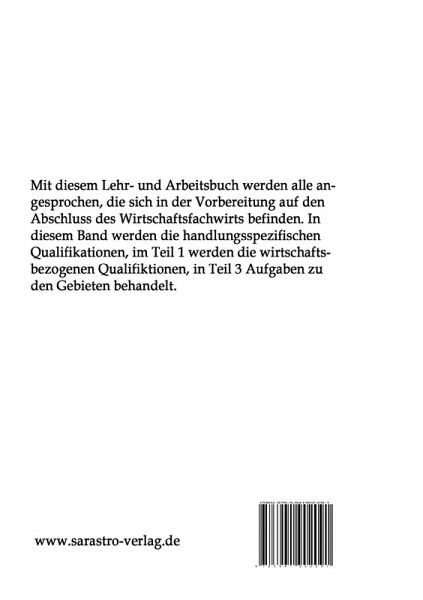 Aus der bewährten Reihe "Das prüfungsrelevante Wissen" richtet sich dieses Lehr- und Arbeitsbuch an alle, die sich optimal und zielgerichtet auf die Abschlussprüfung zum Wirtschaftsfachwirt vorbereiten möchten. Dieser Teil 2 behandelt die handlungsspezifischen Qualifikationen.