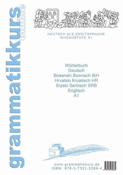 Lernwortschatz für Deutsch-Integrationskurs-TeilnehmerInnen aus Bosnien, Kroatien, Serbien(ex Yugoslawien)Der A1 DEUTSCH Bosnisch - Kroatisch - Serbisch - ENGLISCH Lernwortschatz enthält zusätzlich zur Übersetzung in Bosnisch - Kroatisch - Serbisch - ENGLISCH folgenden Grammatiken.Substantive/NomenArtikeln (der die das)Pluralformen, Endungen und Regeln zur PluralbildungFällen (Nominativ, Genitiv, Dativ, Akkusativ)VerbenInfinitivStammvokalwechsel in verkürzter Form (z.B. a i a für fangen fing gefangen)Konjugationsnummer: Mit Hilfe dieser Nummer lassen sich alle Verben, die in der alphabetischen Verbliste am Ende des Buches PONS Verbtabellen Plus DEUTSCH aufgelistet sind, dem jeweils entsprechenden Konjugationsmuster zuordnen.Stammformen: Die meisten Konjugationsformen der unregelmäßigen Verben lassen sich aus diesen drei Stammformen ableiten: 1. Stammform : Infinitiv2. Stammform: 1. Person (ich) Singular Präsens3. Stammform: 1. Person (ich) Singular Präteritum4. Stammform: 1. Person (ich) Perfekt / Partizip IIAngaben überhaben oder seinreflexive VerbformenPräfixen und Trennbarkeit von PräfixenModalverbenBeispiele / Anmerkungen / BesonderheitenAdjektiveSteigerungsformenAntonyme (Gegenteile: hart weich)Beispiele / Anmerkungen / BesonderheitenSonstige WortartenAdverbien; Interjektionen; Konjunktionen; Numerale; Präpositionen