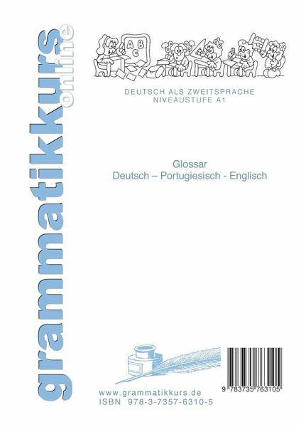 Buchbeschreibung Sprachkurs A1 DEUTSCH zum erfolgreichen SelbstlernenA1 - DEUTSCH - PORTUGIESISCH - ENGLISCH + GrammatikDer A1 - Wortschatz enthält zusätzlich zur Übersetzung ins PORTUGIESISCH - ENGLISCH folgenden Grammatiken:Substantive/NomenArtikeln (der-die-das)Pluralformen, -endungen und Regeln zur PluralbildungFällen (Nominativ, Genitiv, Dativ, Akkusativ)VerbenInfinitivStammvokalwechsel in verkürzter Form (z.B. a - i - a für fangen - fing - gefangen)Konjugationsnummer: Mit Hilfe dieser Nummer lassen sich alle Verben, die in der alphabetischen Verbliste am Ende des Buches PONS Verbtabellen Plus DEUTSCH aufgelistet sind, dem jeweils entsprechenden Konjugationsmuster zuordnenStammformen: Die meisten Konjugationsformen der unregelmäßigen Verben lassen sich aus diesen drei Stammformen ableiten: 1. Stammform : Infinitiv2. Stammform: 1. Person (ich) Singular Präsens3. Stammform: 1. Person (ich) Singular Präteritum4. Stammform: 1. Person (ich) Perfekt / Partizip IIAngaben überhabenoder seinreflexive VerbformenPräfixen und Trennbarkeit von PräfixenModalverbenBeispiele / Anmerkungen / BesonderheitenAdjektiveSteigerungsformenAntonyme (Gegenteile: hart - weich)Beispiele / Anmerkungen / BesonderheitenSonstige WortartenAdverbien; Interjektionen; Konjunktionen; Numerale; Präpositionenjeweils mit Beispielen, Anmerkungen, Besonderheiten